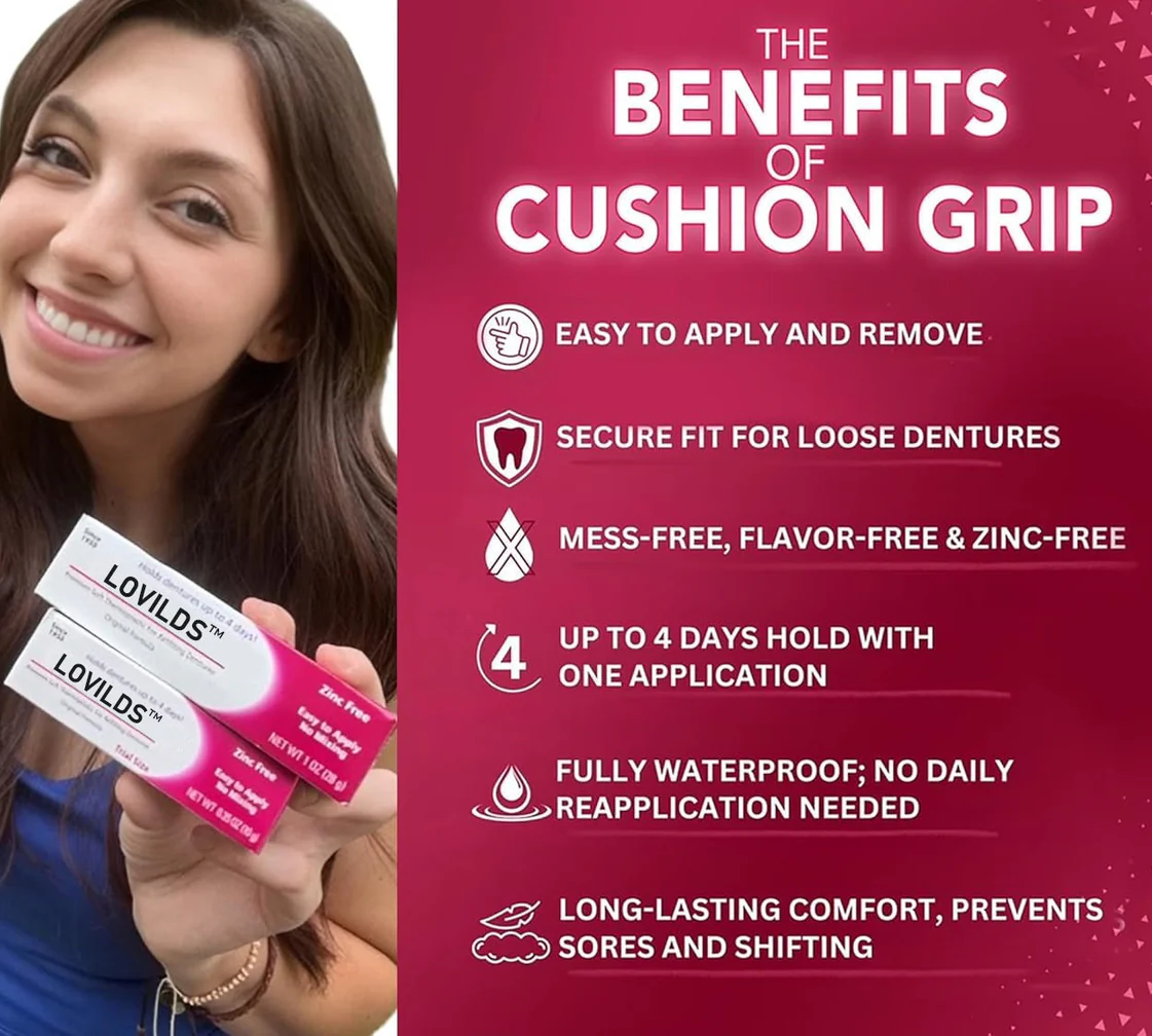 LOVILDS™ doesn't just stick — it supports, cushions, and customizes for a superior denture-wearing experience.